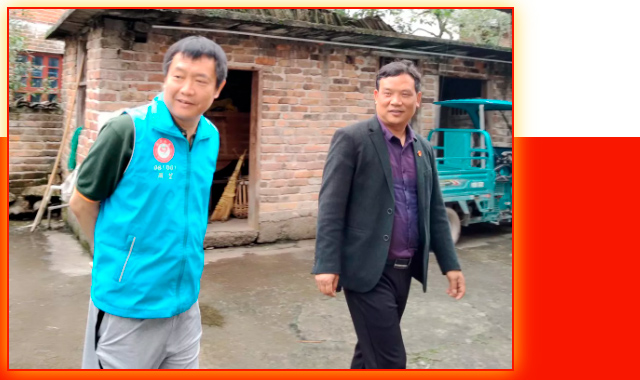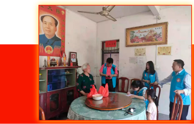 井岡山教體局局長龍平同志也穿上藍(lán)馬甲和我們一起家訪。